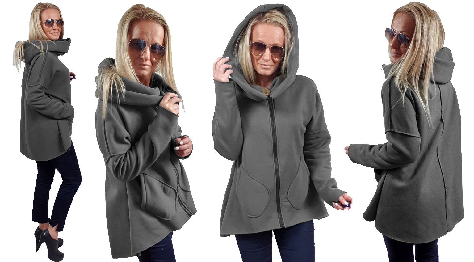 Асимметричная толстовка, туника, кардиган с капюшоном, который можно расположить во многих отношениях.