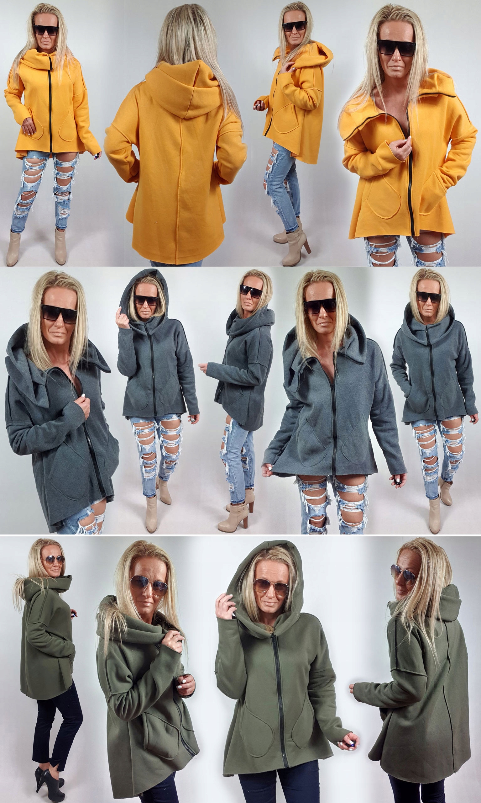 Асимметричный свитшот, туника, кардиган с капюшоном, который можно комбинировать разными способами.