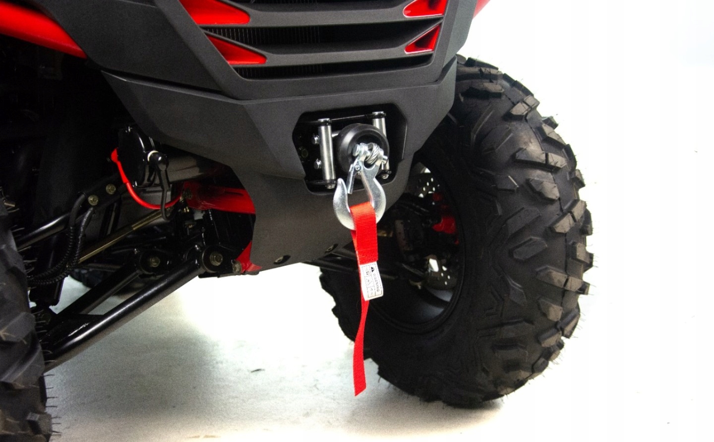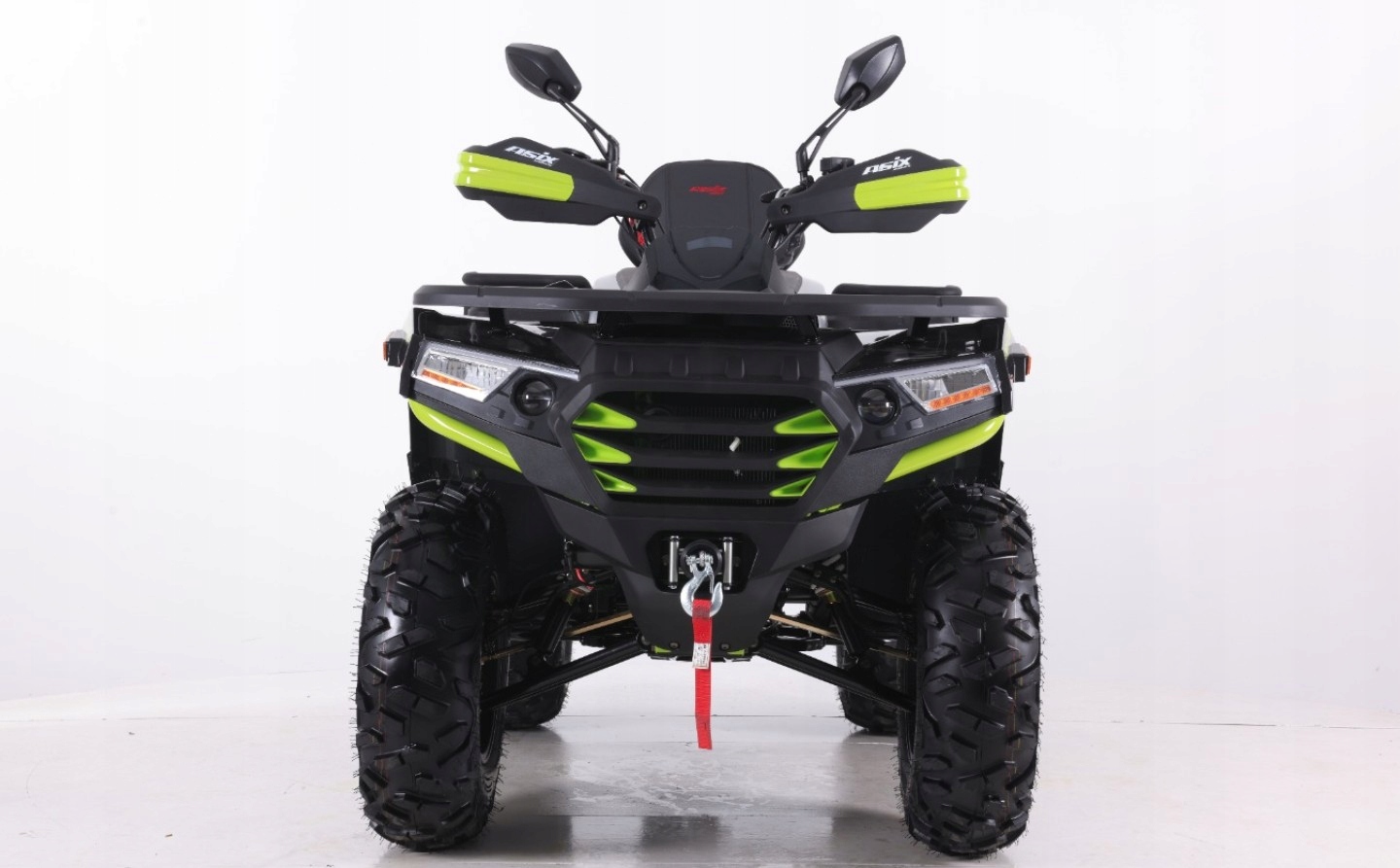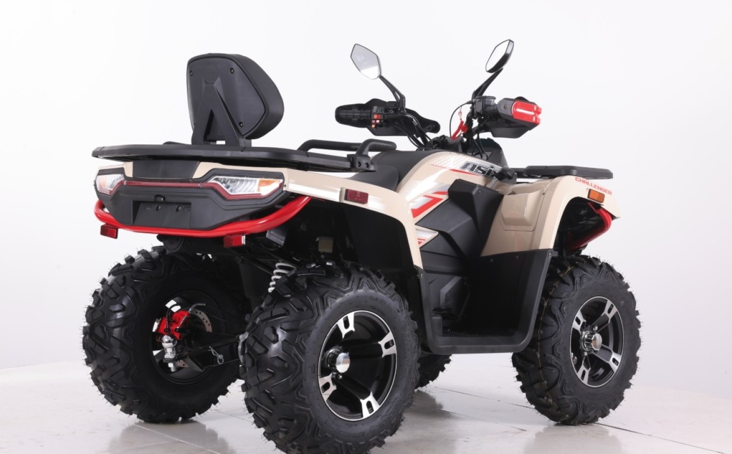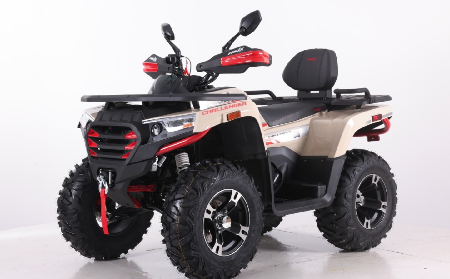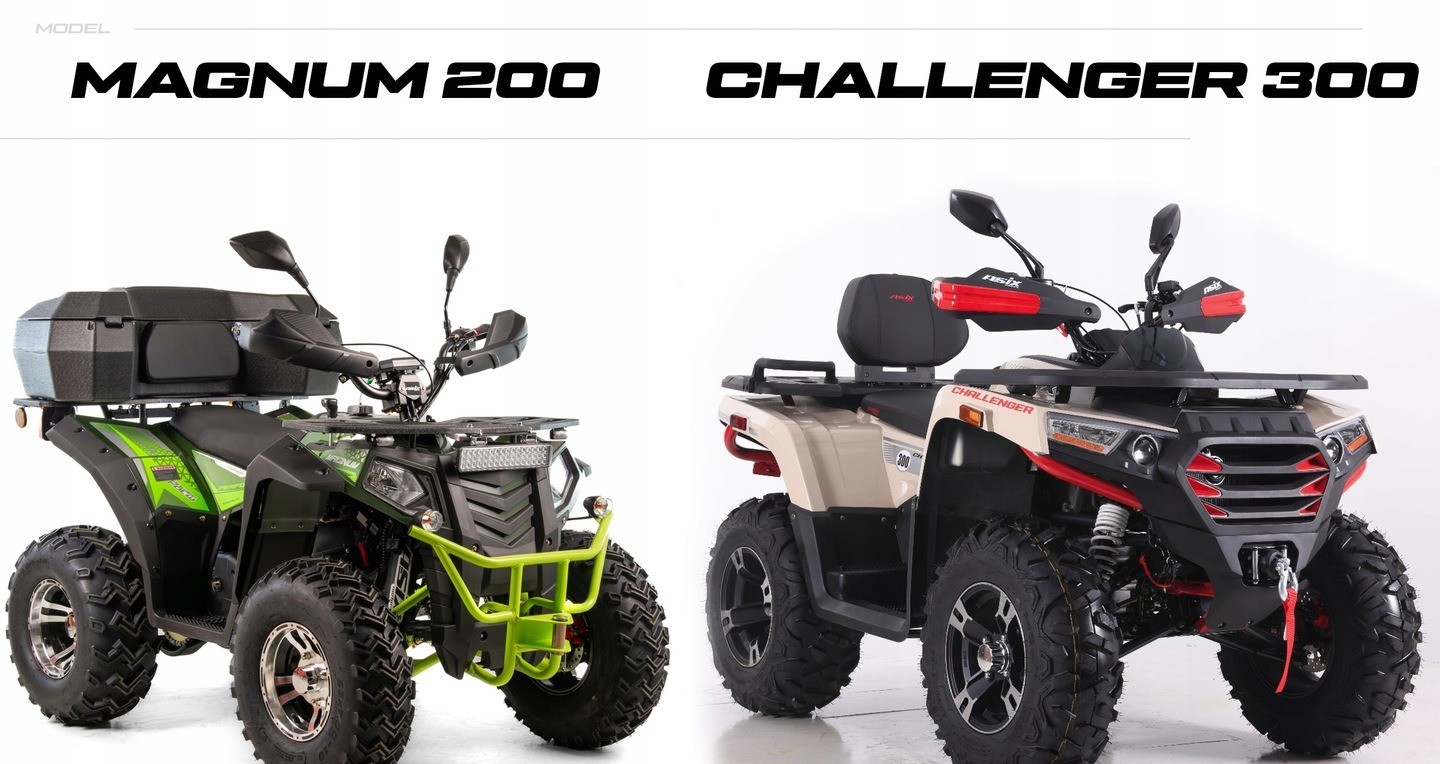 Challenger 300 - это транспортное средство с одобрением дороги в качестве сельскохозяйственного трактора (двойное утверждение). Приводной блок представляет собой жидкий жидкий двигатель Loncin 270 см3 Loncin. Привод передается валом кардана. Квадрат большого размера объединяется на 12-дюймовых алюминиевых ободах. Автомобиль имеет автоматическую коробку передач с двумя режимами движения вперед (L-Wole, H-FAST). Основные элементы оборудования, среди прочего: светодиодное освещение, 3000 фунтов, лебедка, крючок с электрическим гнездом, USB -гнездами, спинками и пассажирскими ручками