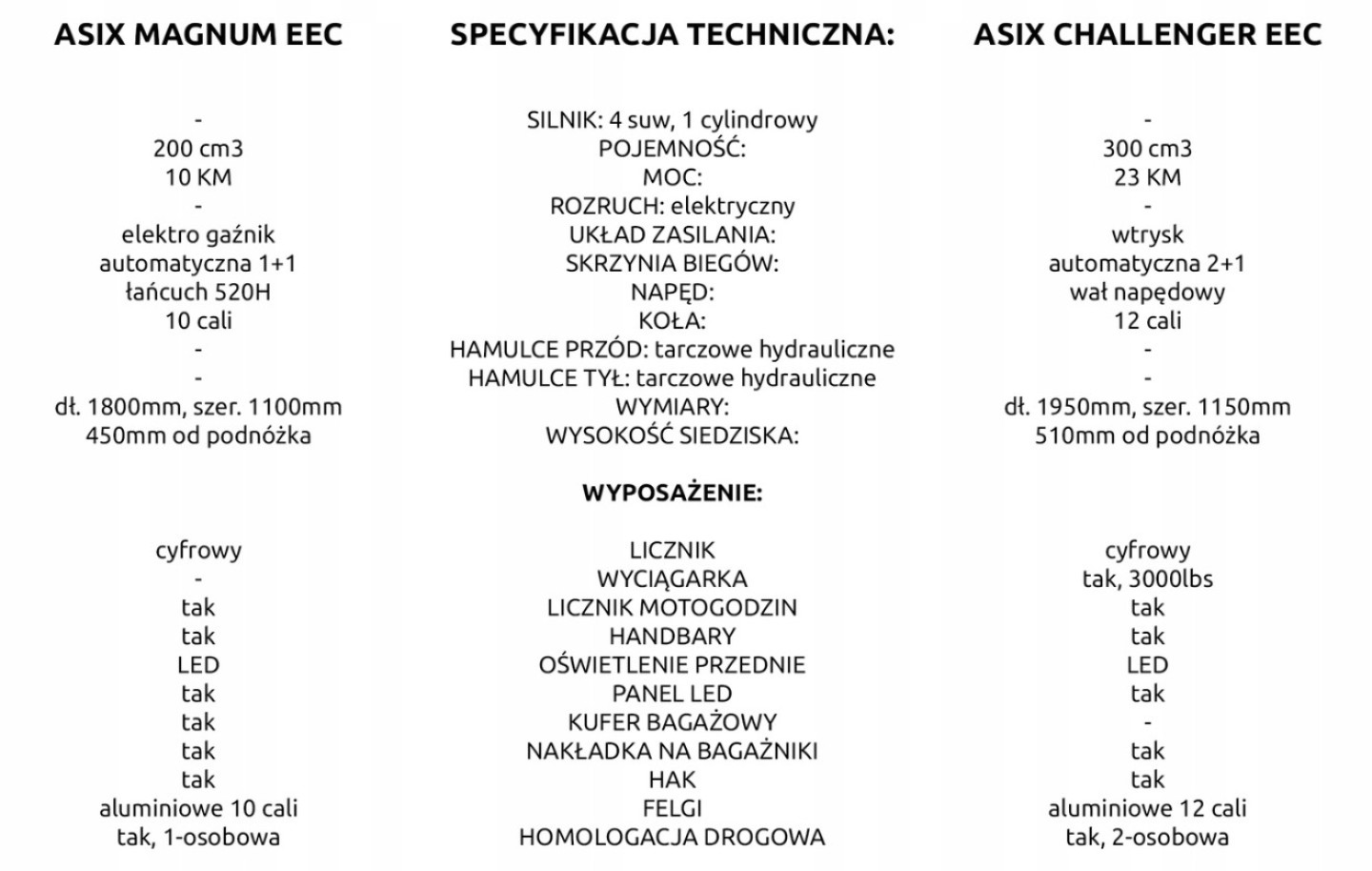 Просматривая «Asix Другое Asix Challenger 300 Automatation T3b одобрение для 2 человек», вы можете быть уверены, что данный товар из каталога «Мотоциклы и квадроциклы» будет доставлен из Польши и проверен на целостность. В цене товара, указанной на сайте, учтена доставка из Польши. Внимание!!! Товары для Евросоюза, согласно законодательству стран Евросоюза, могут отличаться упаковкой или наполнением.