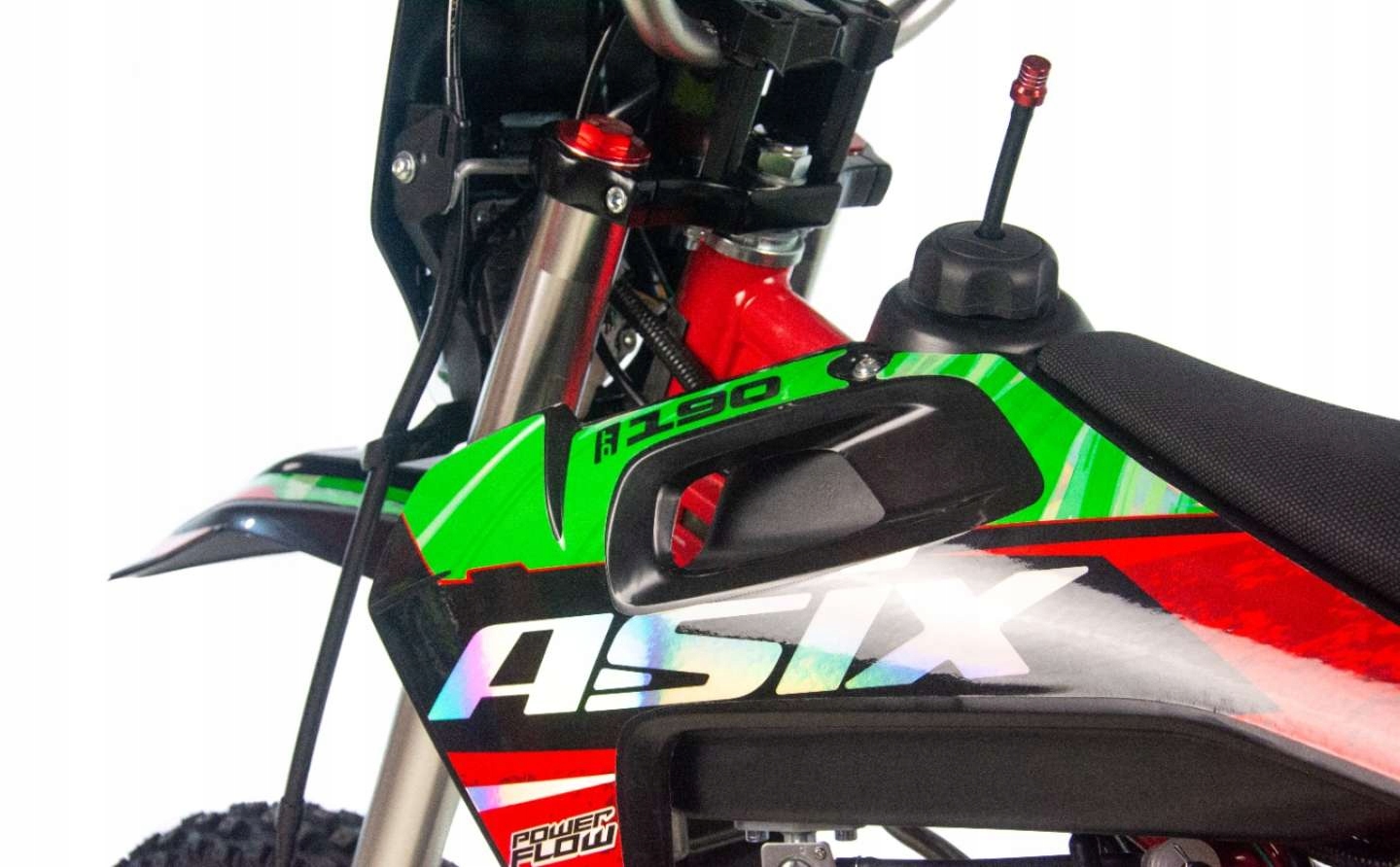 asix dt190 -это транспортное средство с четырехпроцестным (4T) двигателем с емкостью 190 см3 и масляным радиатором. Крест стреляется с электрическим стартером или насыпью. Эта модель предназначена для подростка и взрослых. Кросс объединил на больших колесах 19 "спереди и 16" сзади. Оборудование светодиодной лампой, ручной бары, часовой метр, цепными направляющими, разбитыми рычагами передачи и разбитым тормозом и ручками сцепления