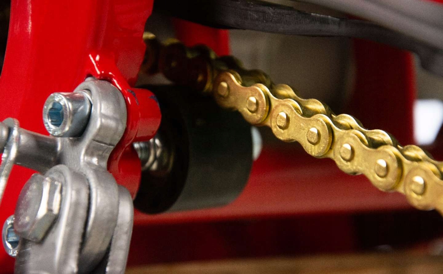 Передняя подвеска была обеспечена с твердыми амортизаторами в системе Upisde Down. Они обеспечивают идеальное демпфирование неравномерности и большого удара поршня при сохранении плавной работы. Задняя подвеска представляет собой твердый качающий маятник с централизованно расположенным масляным амортизатором. Кроме того, был установлен направляющий цепь и ролик натяжного натяжения