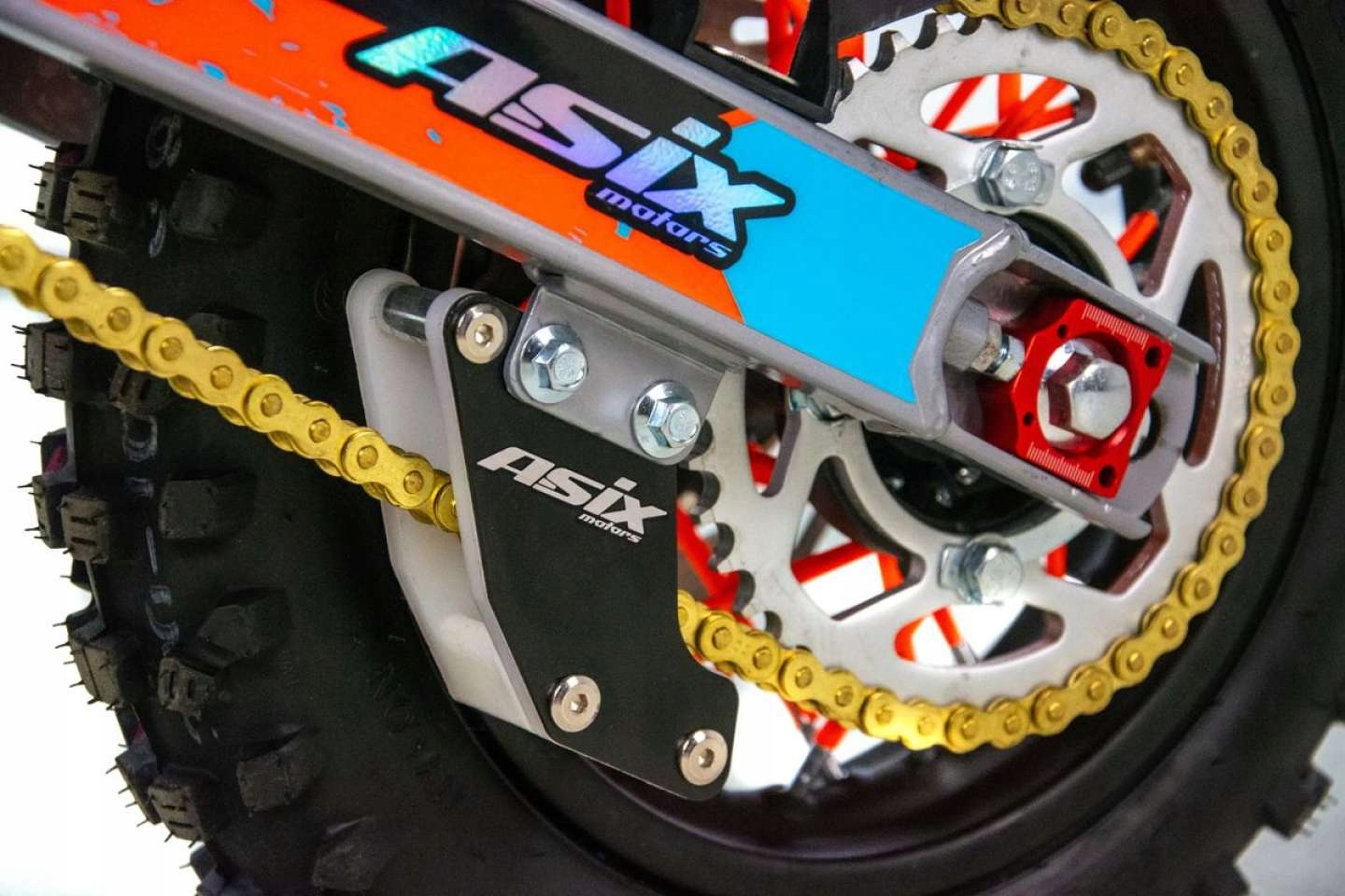 Cross Asix XB27 в емкостью 90 см3 -это автомобиль с четырехпрочным двигателем, выпущенным для электрического стартера. Транспортное средство с автоматической коробкой передач для детей с 135 см в высоту. Крест на колесах 12/10 «С амортизаторами с ногами, часовым измерителем, ручными барами, регулировкой скорости и голографическим виниром