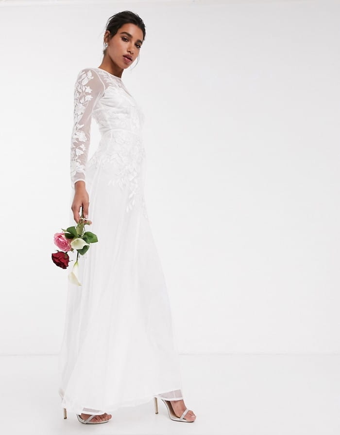 белое платье с длинными рукавами (36)