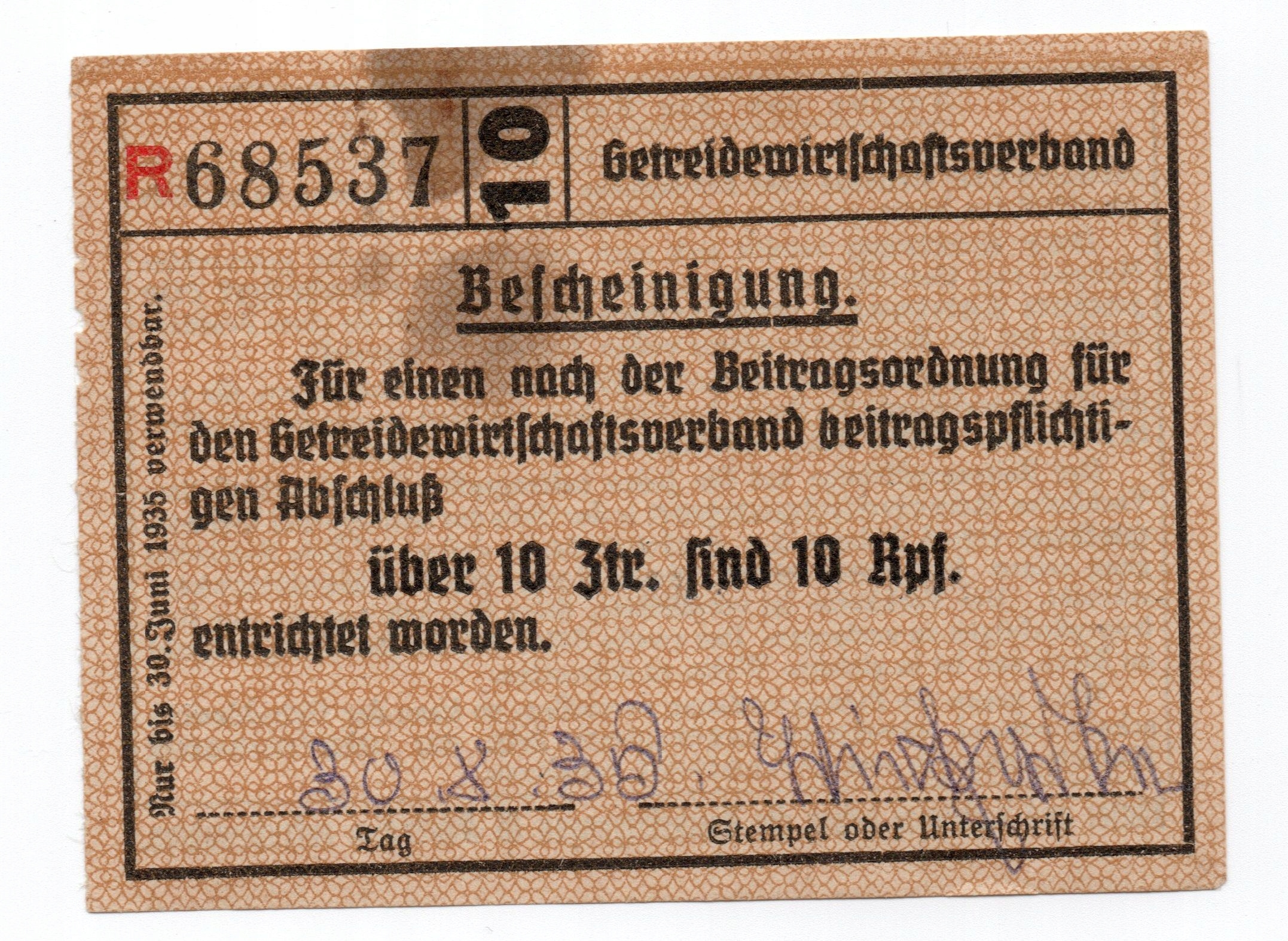 АСОЦІАЦІЯ ЗЕРНОВОГО УПРАВЛІННЯ 10 Rpf. ТРЕТІЙ РЕЙХ СІЛЕЗІЯ