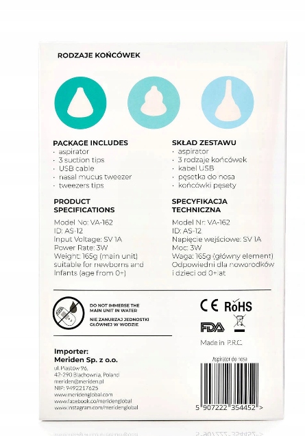 - Два размера удобных кончиков носа обеспечивают хорошая посадка, а дополнительный ушной вкладыш позволяет безопасно удалять выделения из ушей.