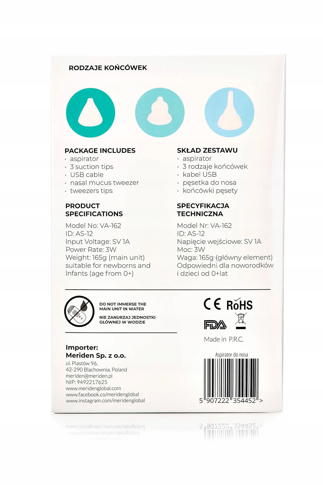 Аспиратор Meriden ASPIRO BABY безопасно и быстро удаляет слизь и выделения из носа и ушей детей с первых дней жизни.
