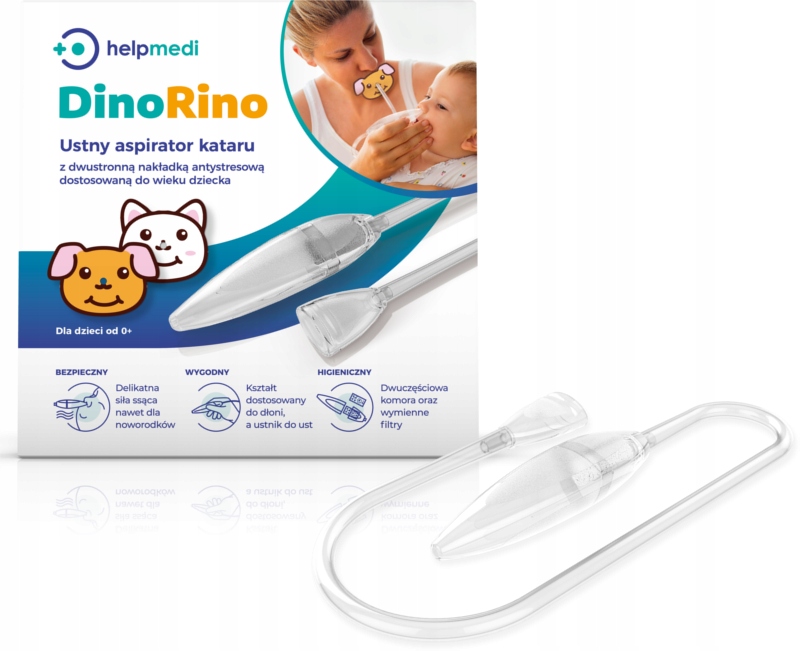 Аспиратор для полости рта от насморка DinoRino — медицинское устройство, предназначенное для безопасного удаления выделений. из носа ребенка путем его высасывания.