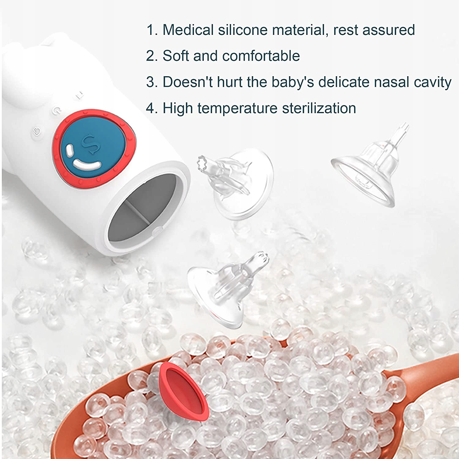 Удобство и портативность: это портативное электрическое устройство для отсасывания носа оснащено USB-аккумулятором емкостью 500 мАч. Благодаря небольшому весу и небольшому весу матери могут использовать его для чистки носа ребенка в любое время и в любом месте.
