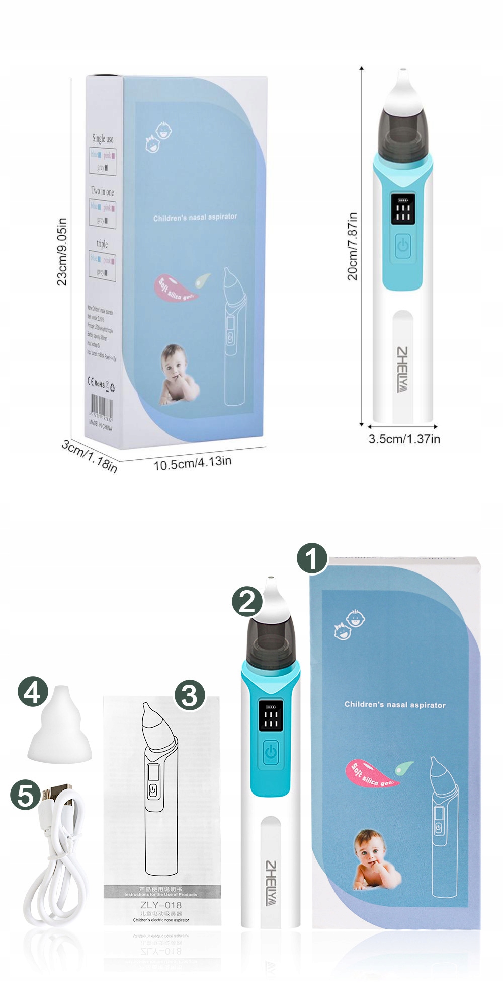 ЭЛЕКТРИЧЕСКИЙ АСПИРАТОР, СИЛИКОНОВЫЙ ОЧИСТИТЕЛЬ НОСОВ ДЛЯ ДЕТЕЙ