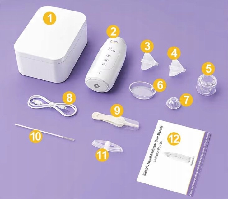 Аспиратор отличается баком, который позволяет легко чистить, и гигиеническим материалом, не вызывающим раздражения. Наконечники носа и контейнер для секрета можно стерилизовать, что обеспечивает безопасность и гигиену устройства.