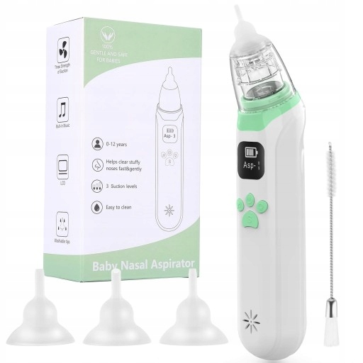 3 уровня всасывания: детский назальный аспиратор имеет 3 уровня всасывания, сильное всасывание, в сильном режиме всасывание может достигать 65 кПа. После проверки врачом это не повредит носу ребенка. Безопасно и эффективно очищает нос вашего ребенка, очищает поцелуи и многое другое