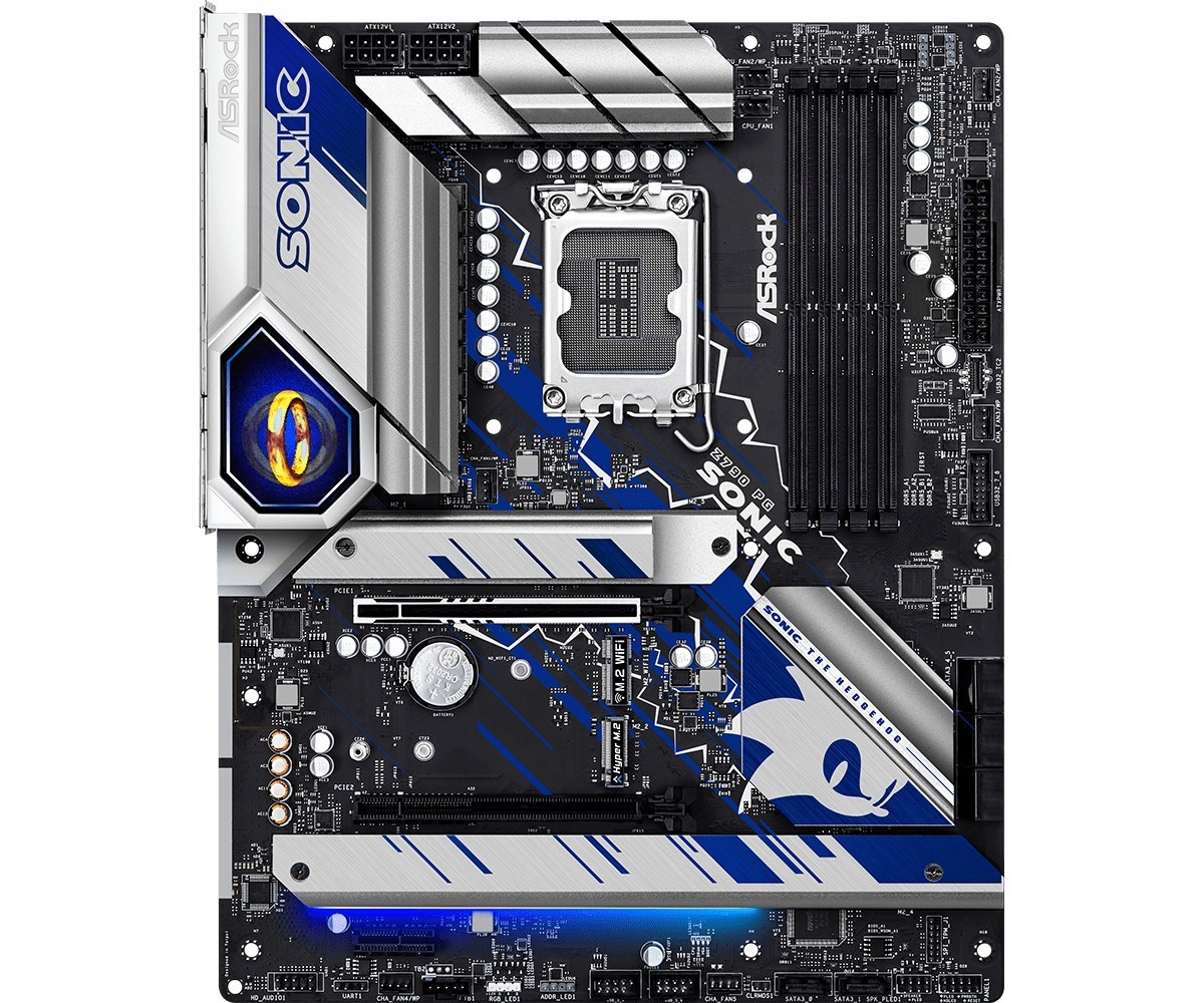 ASRock Z790 PG SONIC — материнская плата, вдохновленная культовым персонажем Sonic the Hedgehog. Он имеет уникальный дизайн, включающий 16-битный вращающийся рисунок кольца на задней крышке IO и силуэт Соника. В плате использована передовая технология с 14+1+1 фазами питания dr.MOS, что обеспечивает стабильность и производительность при интенсивной работе. Кроме того, она оснащена медной печатной платой толщиной 2 унции, которая обеспечивает лучшее распределение тепла.