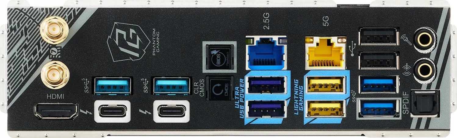Панель Tylnyhdmi x1, кнопка Bios Flashback x1, кнопка Clear Cmos x1, RJ-45 x2, S/PDIF Optical X1, Thunderbolt 4 X2, USB 2.0 x2 , USB 3.2 Gen 1 (3,0/3.1 Gen 1) x4, USB 3.2 Gen 2 (3,1 Gen 2) x4, антенны Wi -Fi x2, разъем Audio разъем x2