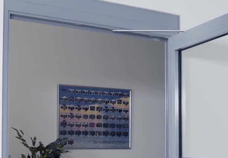 ASSA ABLOY DC840 доводчик встраиваемый, скрытый, с направляющей, серебряный. Встроенный доводчик.