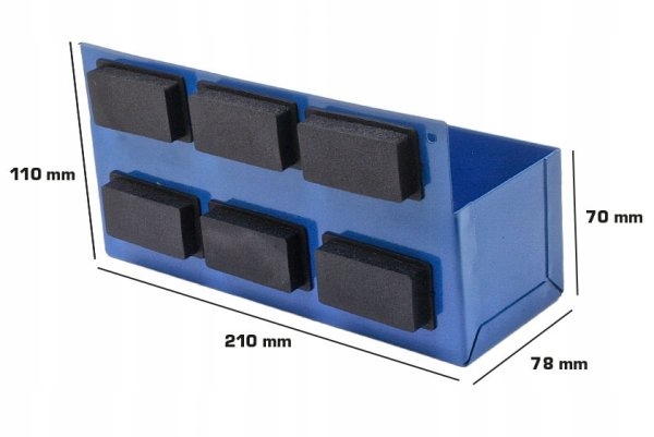 Применение в гаражах, семинарах или производственных линиях. Магни защищена пластиком. Идеально подходит для хранения инструментов, банок, бутылок на рабочем месте. Строительство покрыта порошковой краской. Очень сильные магниты обеспечивают достаточную стабильность.