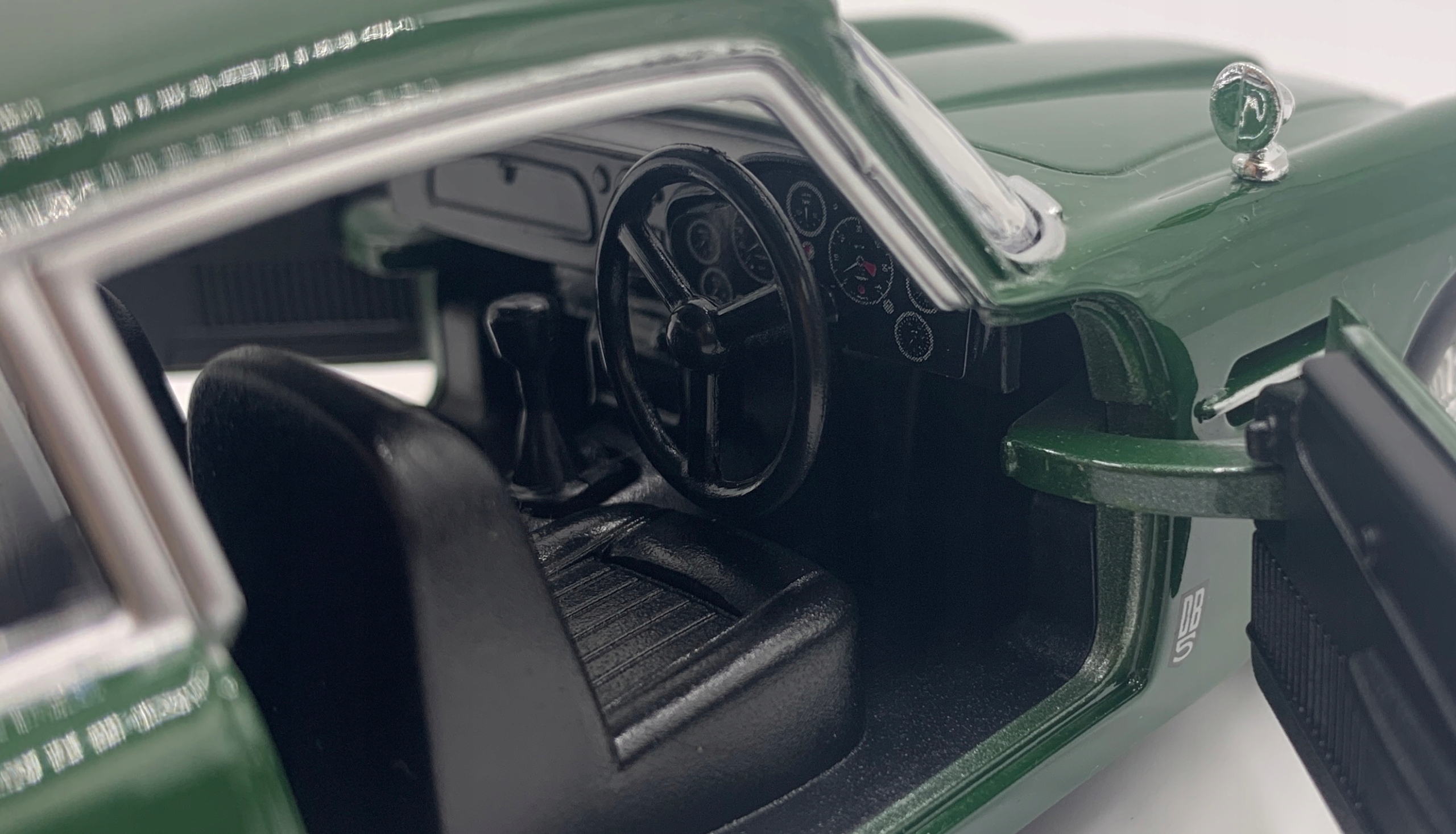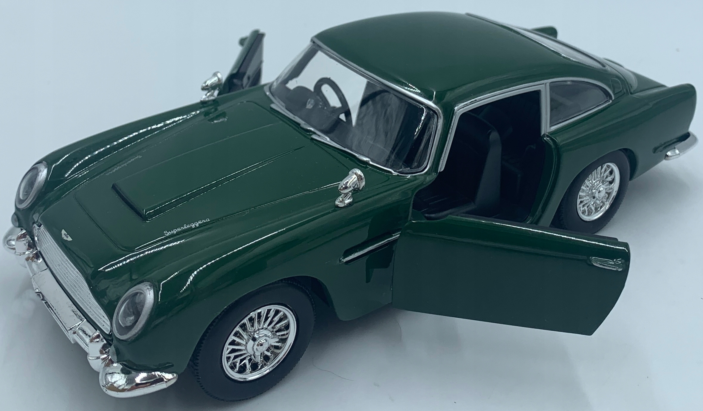 Модель автомобиля DB5 отличается вниманием к деталям. Имеет подвижные элементы – дверцы, колеса.