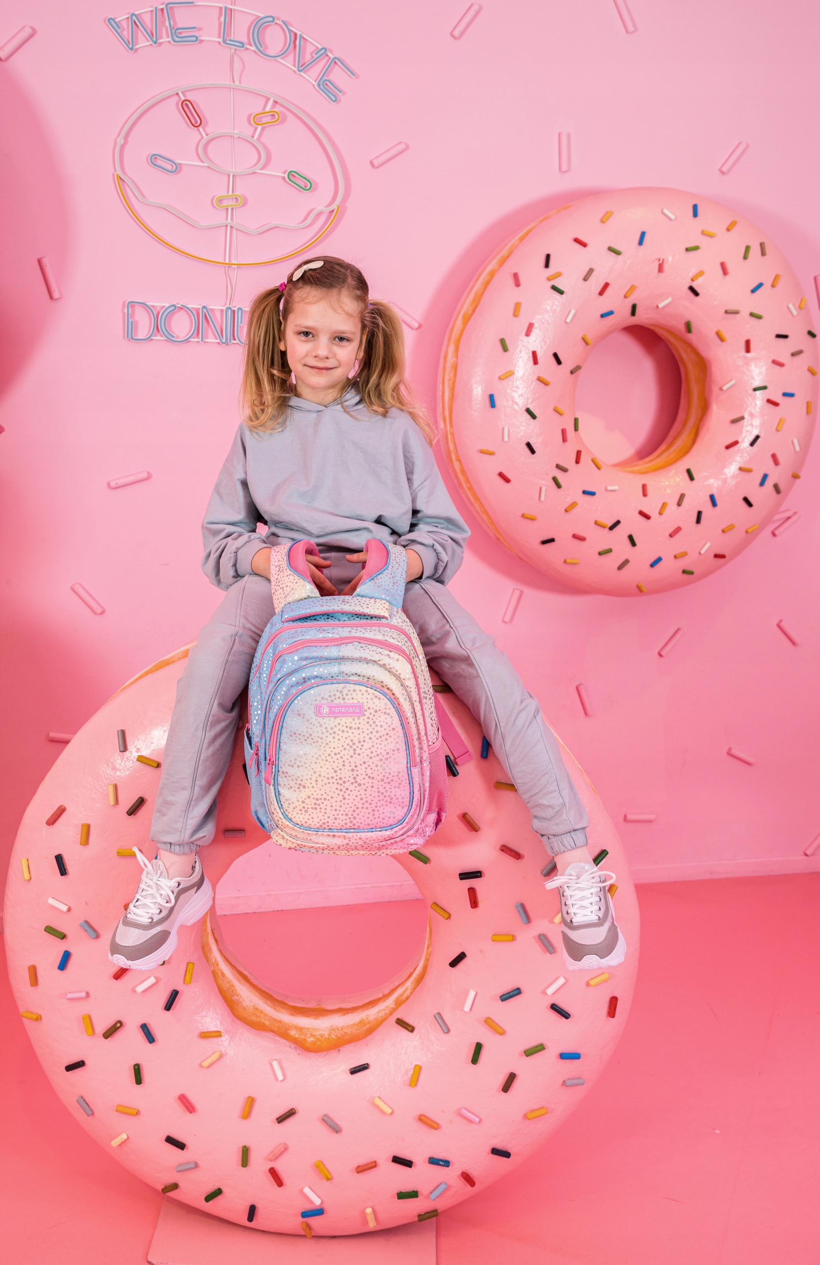 Рюкзак Astrabag школьный с тремя отделениями и принтом Пастельный мотив ombre — абсолютный хит этого сезона. Красивые цвета, дополненные серебряным точечным узором, переливающимся на солнце, покорят сердце каждой девушки. Рюкзак Astrabag имеет три функциональных отделения, оснащенных практичным карманом и органайзером для мелких вещей. В нем использована новейшая технология Ergo Back, минимизирующая давление на плечи и позвоночник и обеспечивающая ребенку ощущение комфорта.