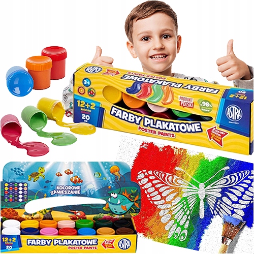 Вот краски для школьных плакатов 12 + 2 интенсивных цвета x 20 мл Astra - Ваш ключ к творчеству и выразительности творит искусство!