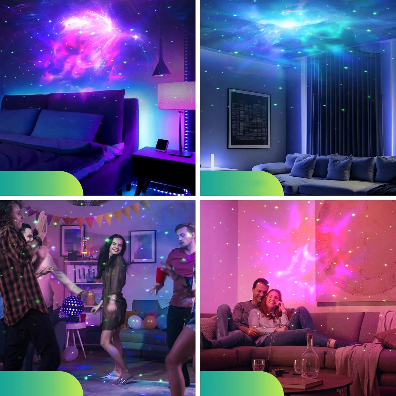 - Перевороты туманности, яркости и скорость вращения можно отрегулировать с помощью кнопок в Обратно или пульт дистанционного управления. Магнитный угол проекции можно отрегулировать, поворачивая головку >- Это подходит для спальни, гостиной, детской комнаты, учебной комнаты, клуба, кафе, игровой комнаты, бара и т. Д.