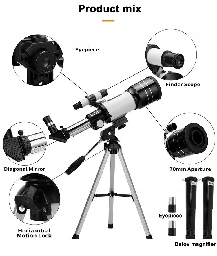 TELESKOP ASTRONOMICZNY, LUNETA, 1.4M TRIPOD, DLA DZIECI, 150 X ZOOM, HD