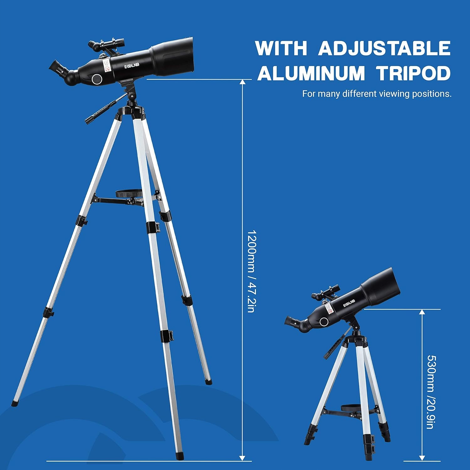 Безопасность и простота использования – конструкция легкая, штатив устойчивый, что делает телескоп пригодным как для домашнего, так и для полевого использования. Внимание: не наблюдайте за Солнцем без соответствующего фильтра!