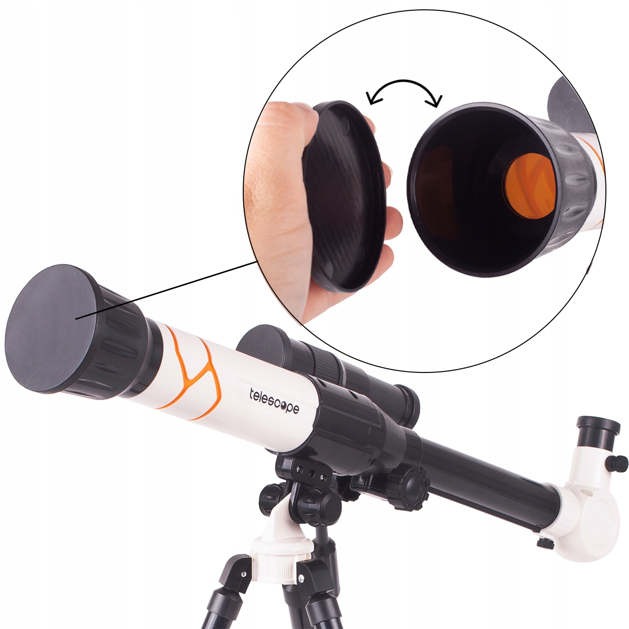 Телескоп и штатив изготовлены из пластика. Установленная внешняя крышка облегчает поддержание чистоты оптики телескопа.