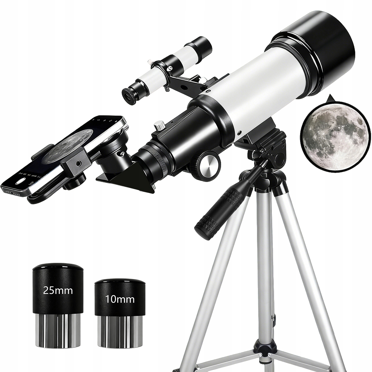 ✨✨✨Телескоп для начинающих для взрослых, апертура 70 мм, фокусное расстояние 400 мм, крепление AZ, преломляющая оптика с многослойным покрытием, портативный телескоп, дорожный телескоп со штативом и адаптером для телефона — белый ✨✨✨