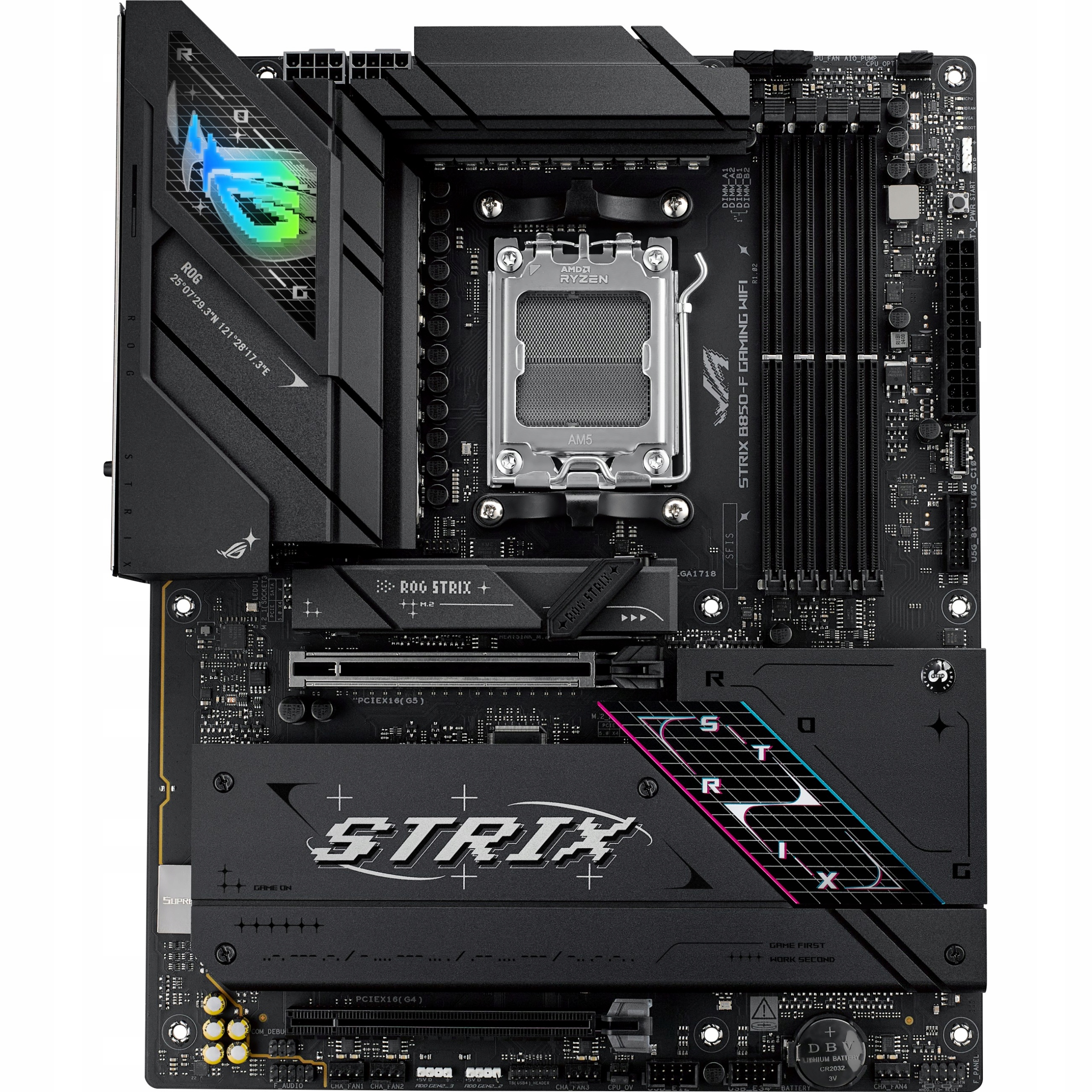 ASUS ROG STRIX B850-F GAMING WIFI — эффективная материнская плата формата ATX, совместимая с процессорами AM5 и памятью DDR5. Идеально подходит для геймеров: он предлагает расширенные сетевые функции благодаря встроенному Wi-Fi.
