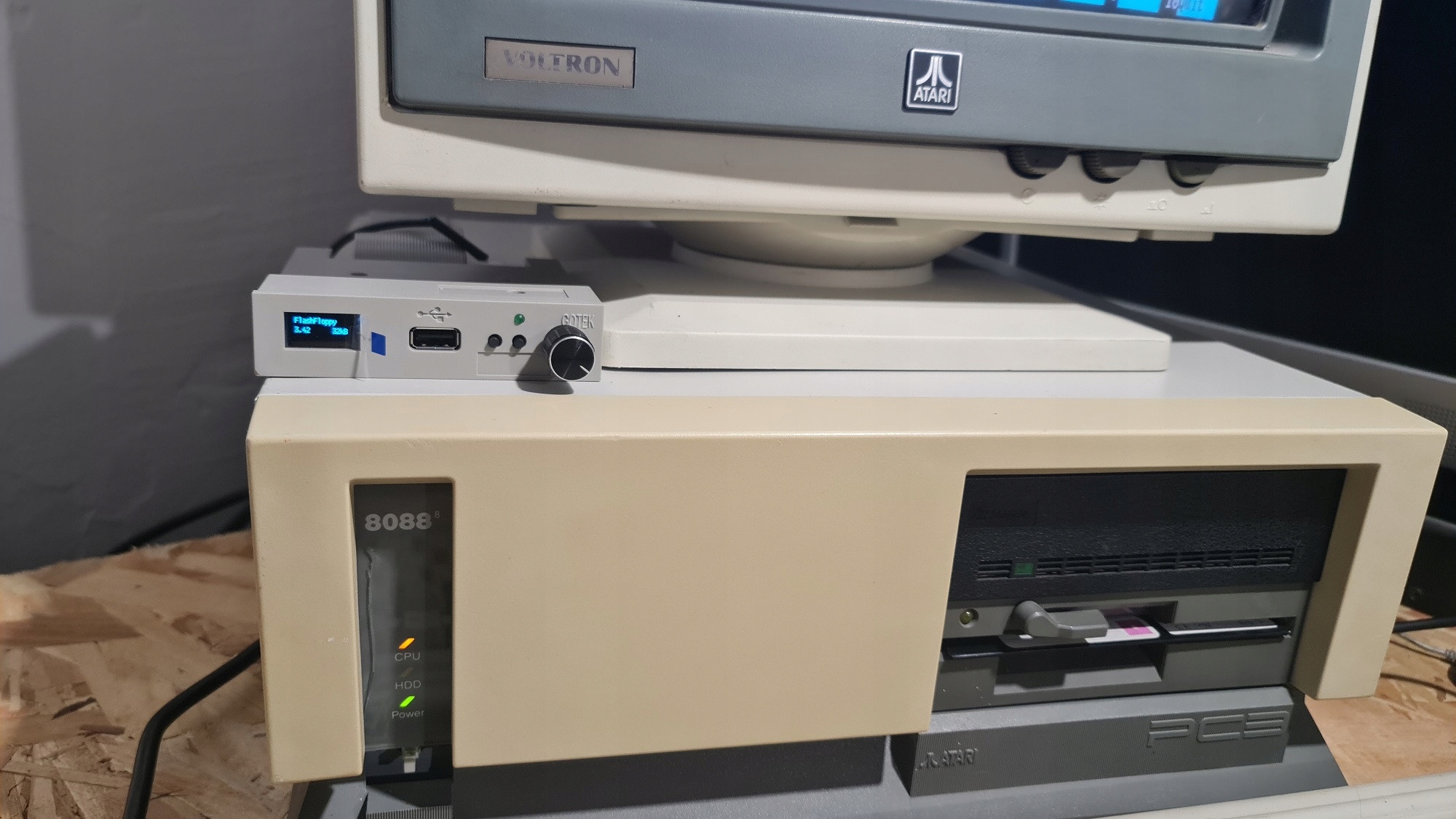 соединительный набор goteka как Внешняя станция B в Atari PC1, PC3, PC4. Вы также можете подключить обычную станцию, но питание регулярной станции требует 5 В и 12 В питания - нет такого питания в наборе.