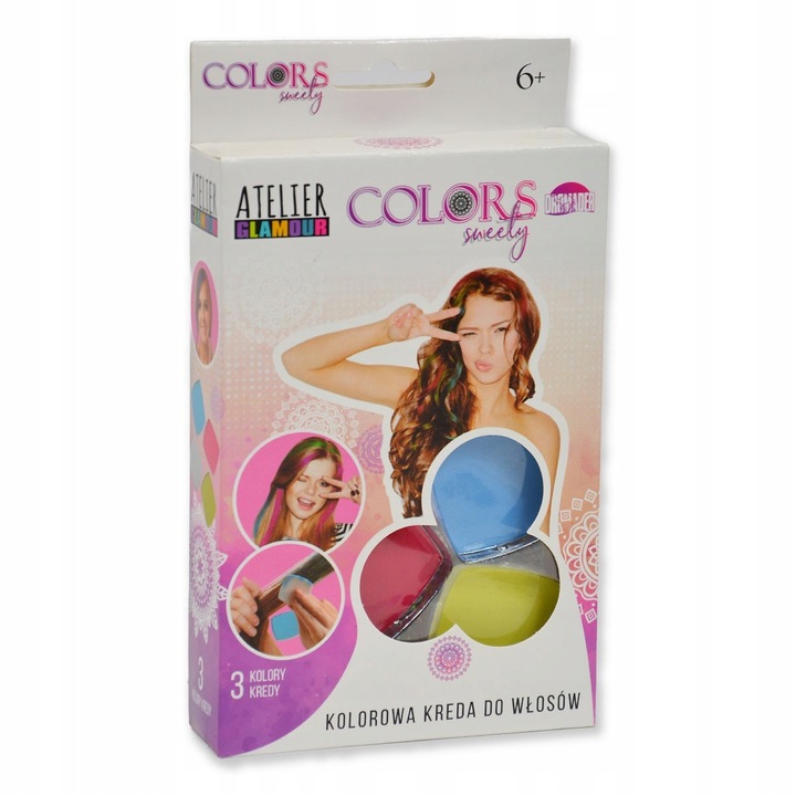 Креативный набор для волос. Теперь вы можете иметь чудесно окрашенные волосы благодаря специальным мелкам. С помощью губки можно быстро нанести на волосы любимый цвет. Мел безопасен и легко смывается.