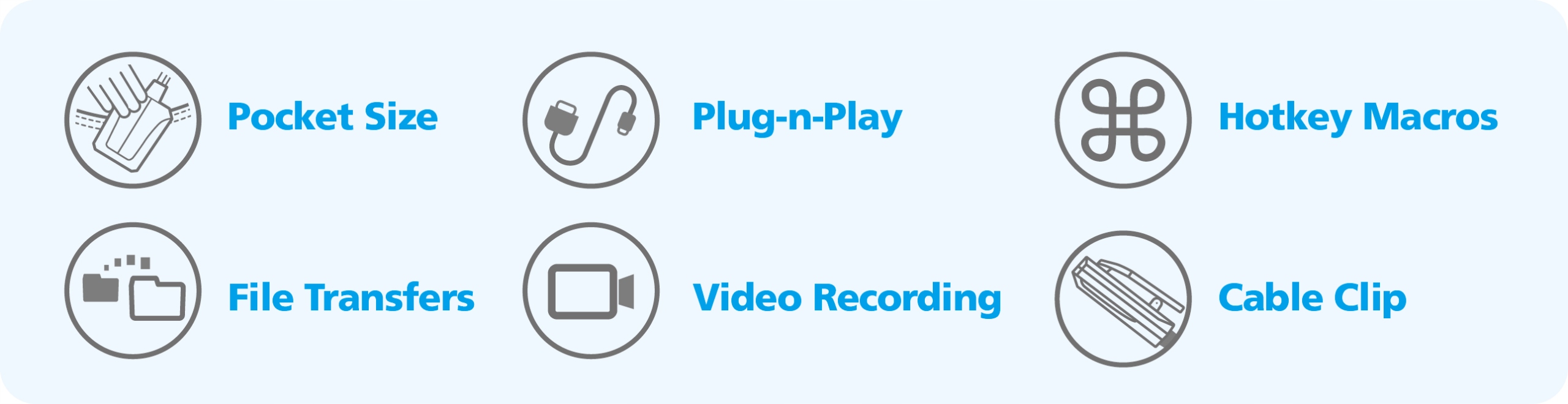 Адаптер USB KVM-консоли для ноутбука CV211 обеспечивает прямое соединение между вашим ноутбуком и компьютером, серверами, киосками и банкоматами. Это устраняет необходимость в тяжелом оборудовании при доступе к BIOS и обеспечивает двунаправленную передачу файлов, макросы горячих клавиш, запись видео и снимки экрана через композитный кабель USB 2.0 и VGA.