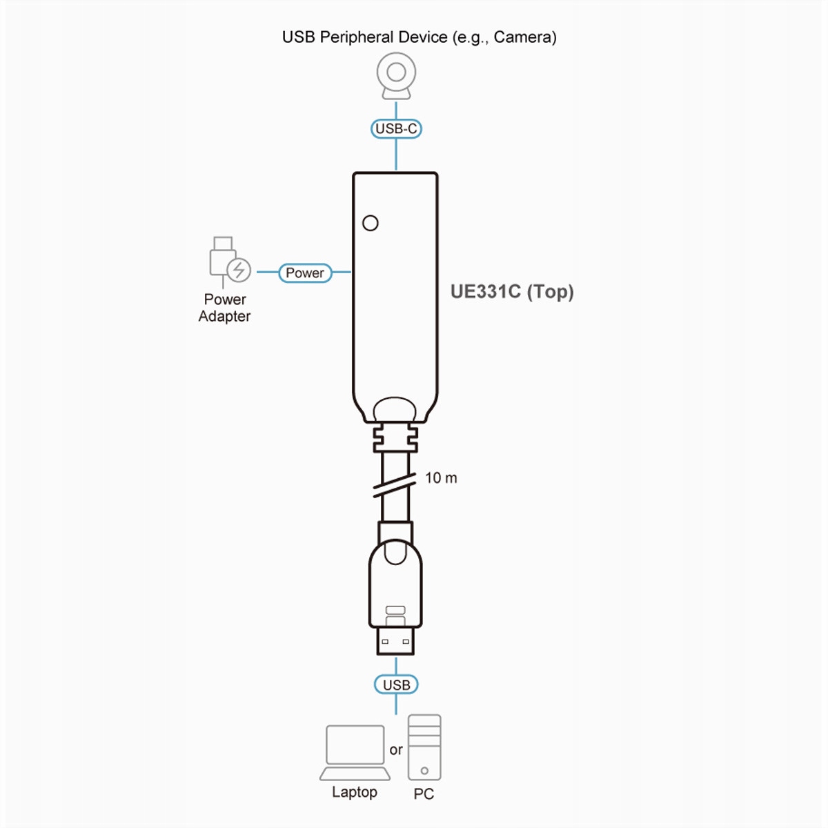 ATEN UE331C USB-A 3.2 Gen1 to USB-C Extender 10m