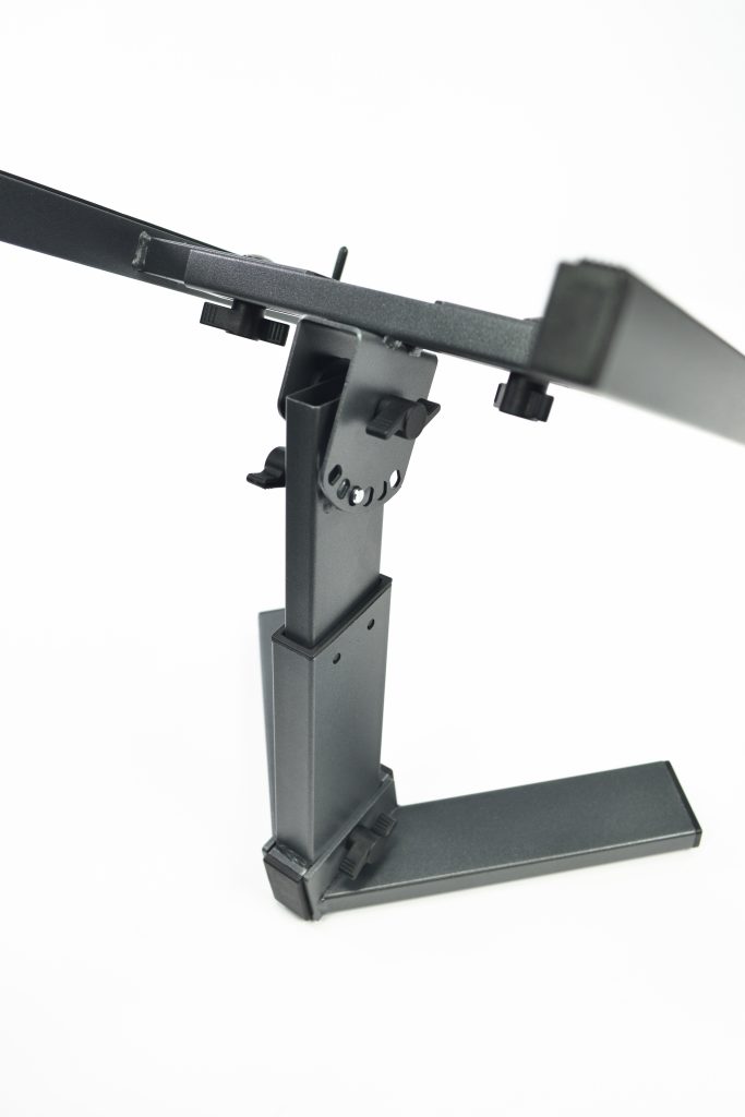 Профессиональная, полностью регулируемая подставка для ноутбука антрацитового цвета. Дополнительно оснащен ручкой для крепления штатива к столешнице.