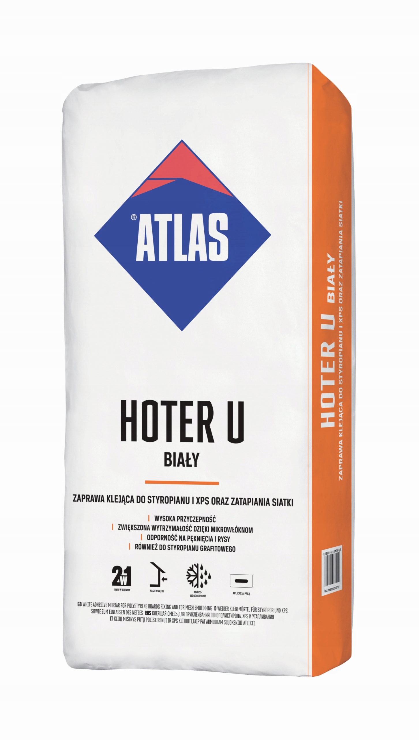 - выпускается в двух вариантах: на белом цементе (ATLAS HOTER U WHITE) или на сером цементе (ATLAS HOTER U) - использование белого цемента повышает прочность клеевого слоя ли>