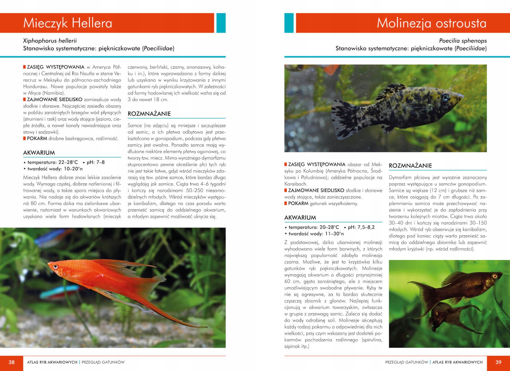 Атлас содержит богато иллюстрированные описания 150 видов наиболее популярных аквариумных рыб. Характеристики включают описание внешнего вида и поведения рыб, а также способ размножения и основные требования к разведению.