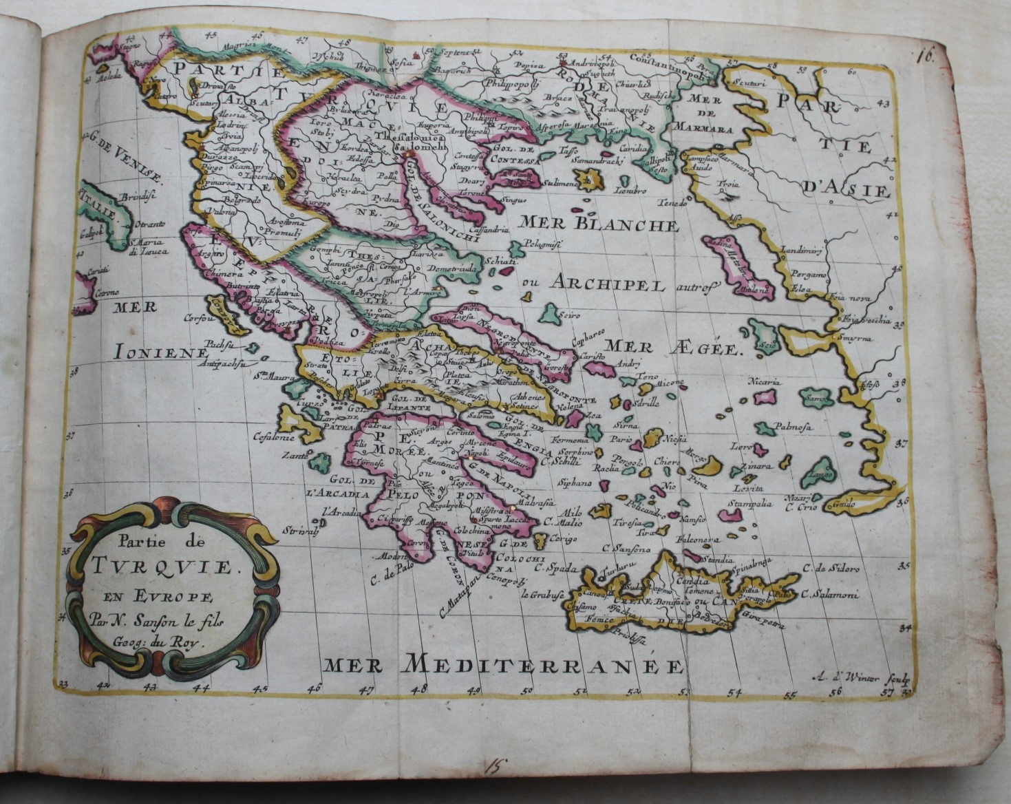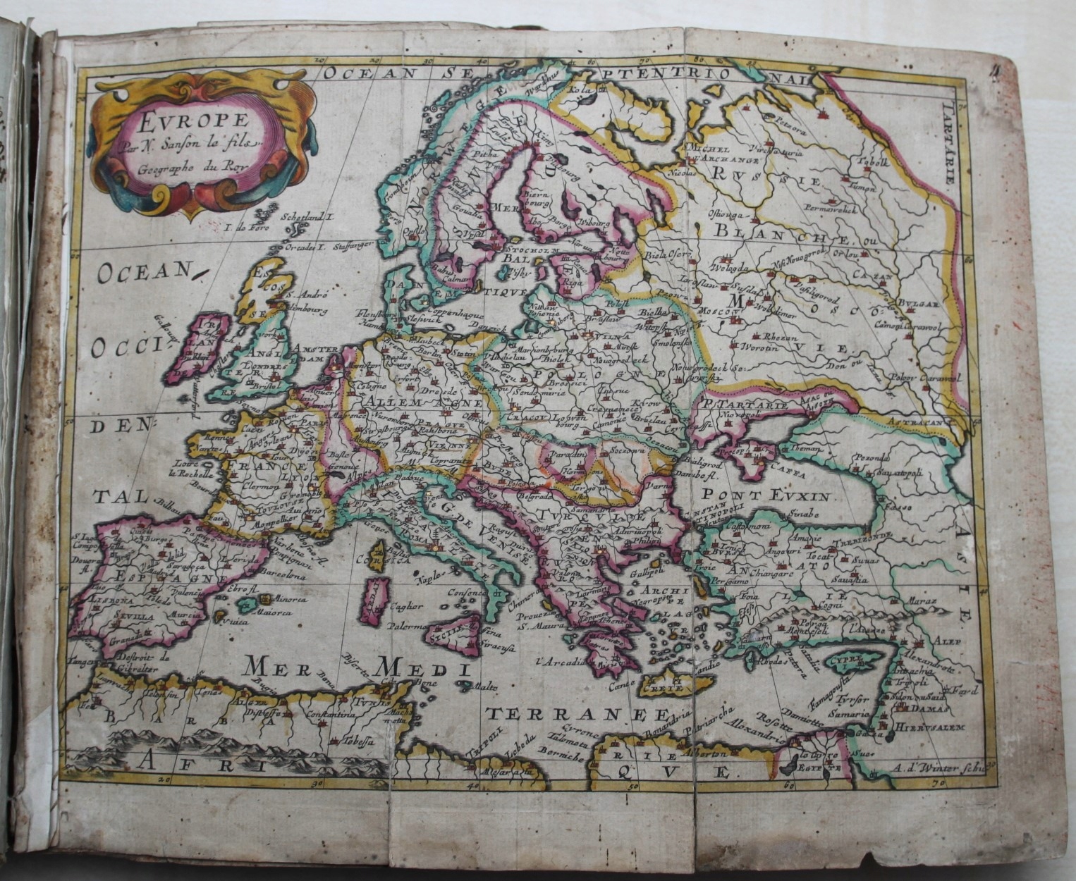 Atlas Sanson`a 58 pięknych oryg. map 1700r.miedzioryty kolorowane