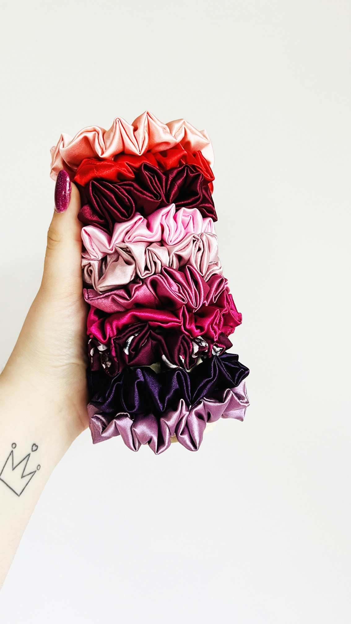 Диаметр резинки MINI SCRUNCHIE составляет ок. 7 см. Подойдет для всех типов волос. В зависимости от толщины волос вы можете завязать их до 4 раз (для волос средней толщины обычно 2 раза).