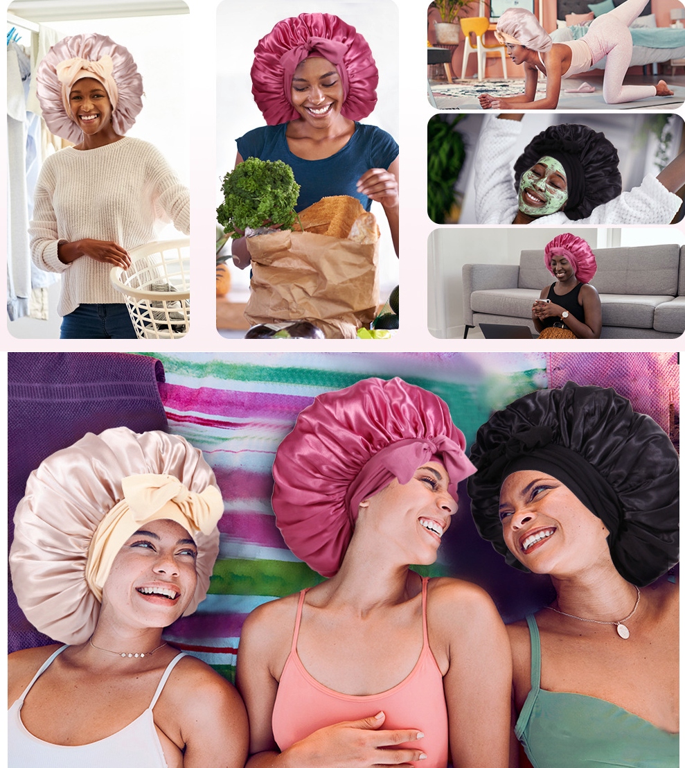 идеально подходит для всех типов волос - как кудрявые, так и простое. Это также работает как крышка готовой прически, например, В горячим или горячем стилии. также можно использовать для защиты волос во время смазания или макияжа.