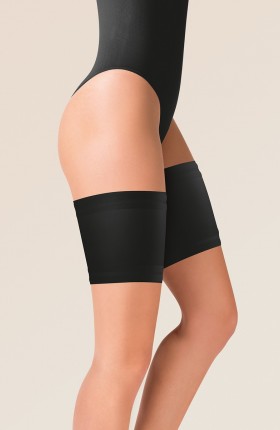 Повязка остается на месте и эффектно украшает ногу, предотвращая ссадины и язвы в чувствительной части бедра.