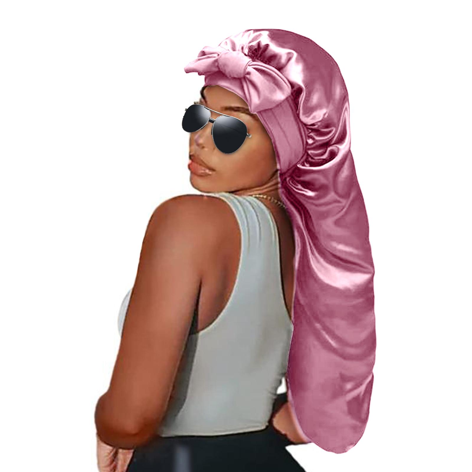 [Атласная шапочка для длинных волос]: шелковистая атласная шапочка эффективно уменьшает трение между волосами и подушкой, предотвращает вьющиеся волосы, спутывание и сухость, а также эффективно защищает волосы.