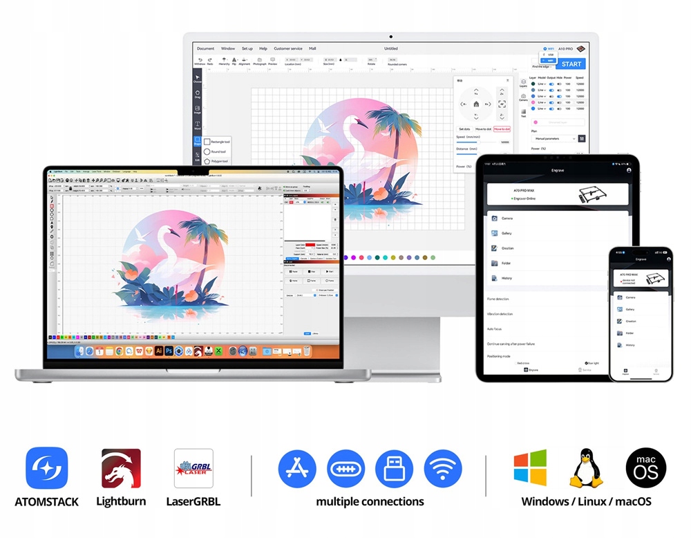 - Оперативное программное обеспечение: Lasergrbl, Lightburn