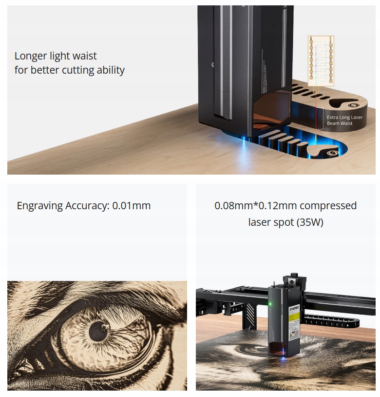 более длинная световая талия для лучшей способности сжимать лазерное пятно (35 Вт).