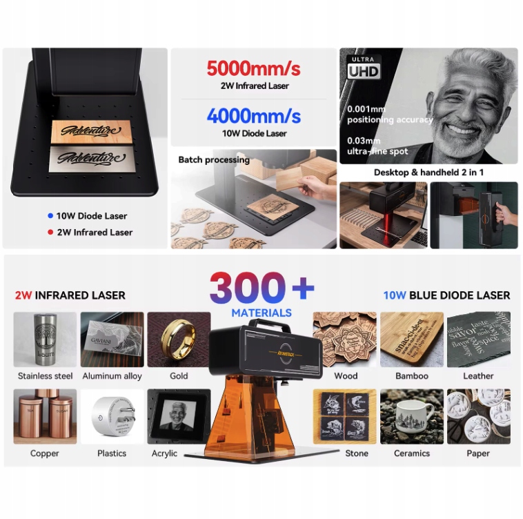 otomstack M4 Pro Double Laser с синим инфракрасным лазером. Металлическая маркирующая машина. AtomStack M4 Pro Portable Double Laser Gravily