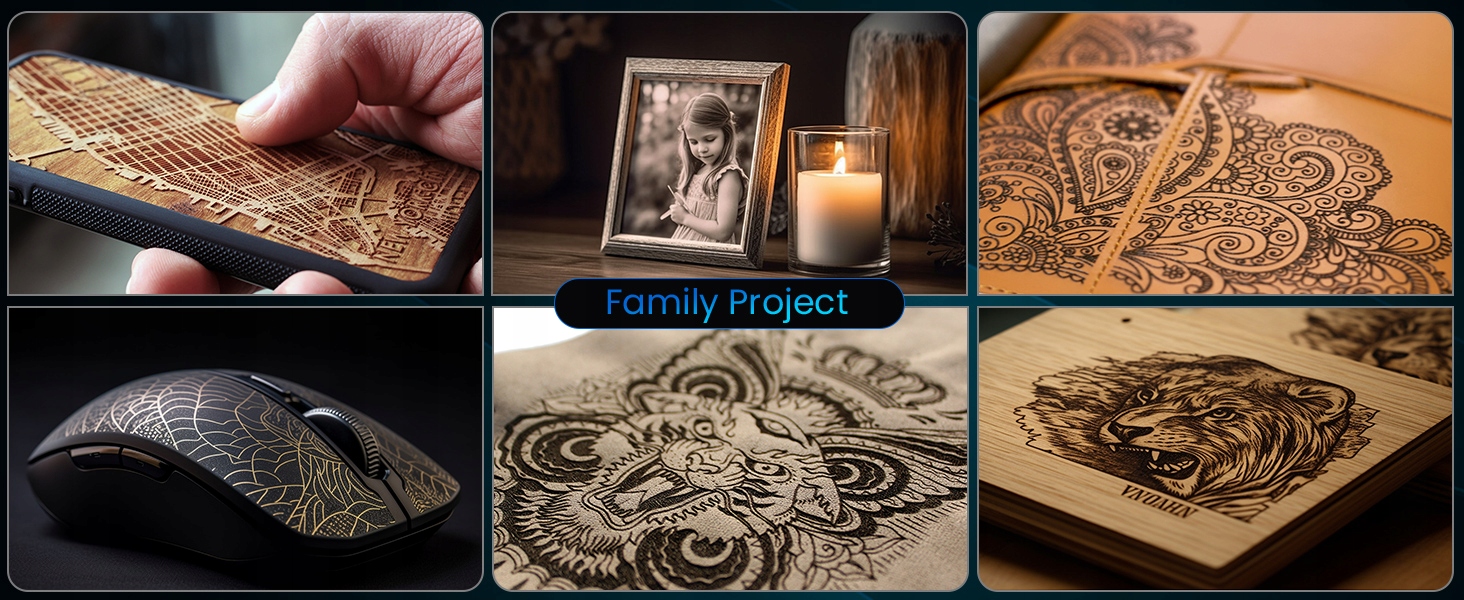 - Материал для резьбы: дерево, бамбук, картон, пластик, кожа, печатная плата доска, глинозем, антибликовый оцинкованный и окрашенный металл, зеркало из нержавеющей стали 304, стекло, керамика, хлопчатобумажная ткань, шифер;