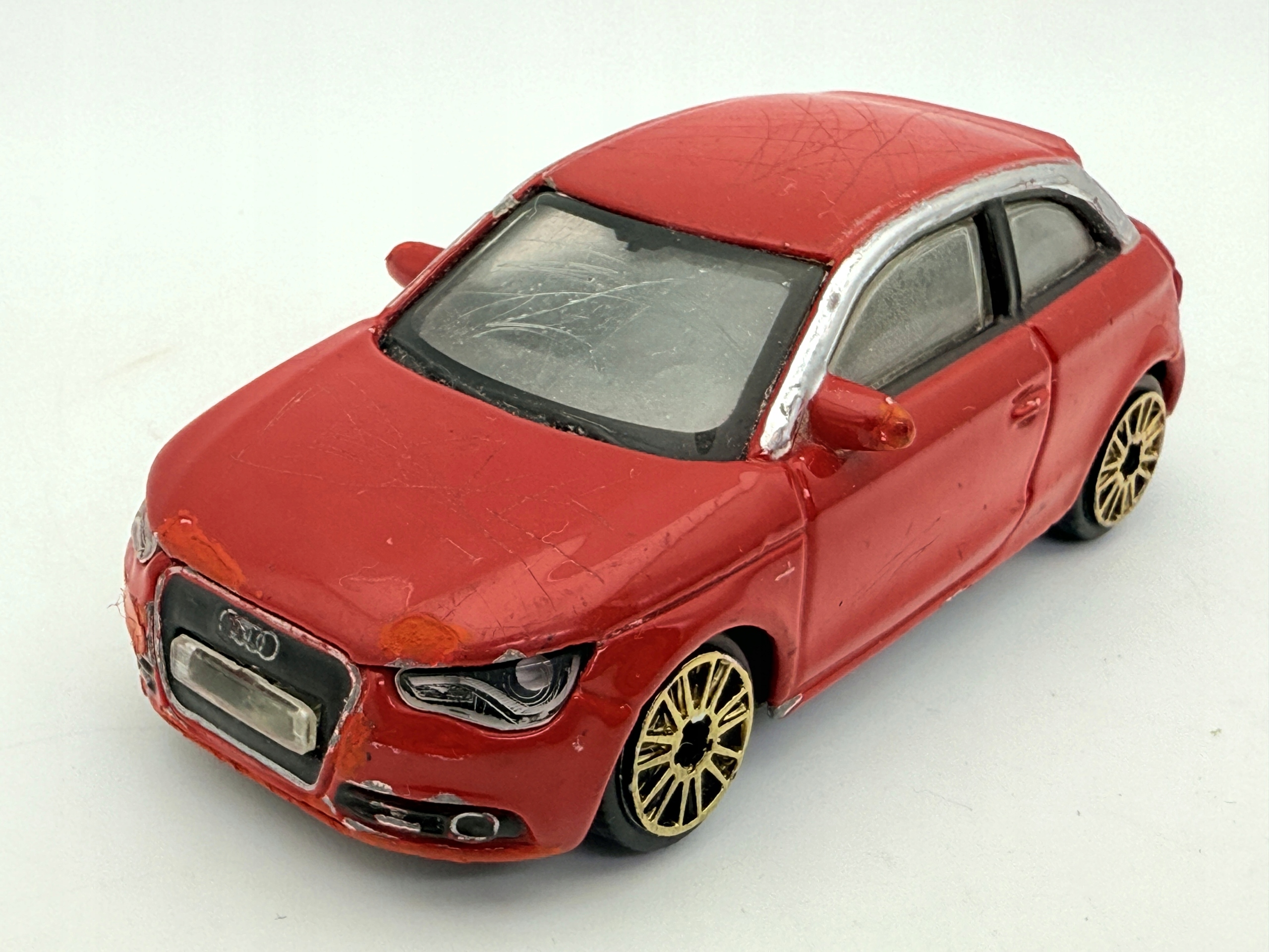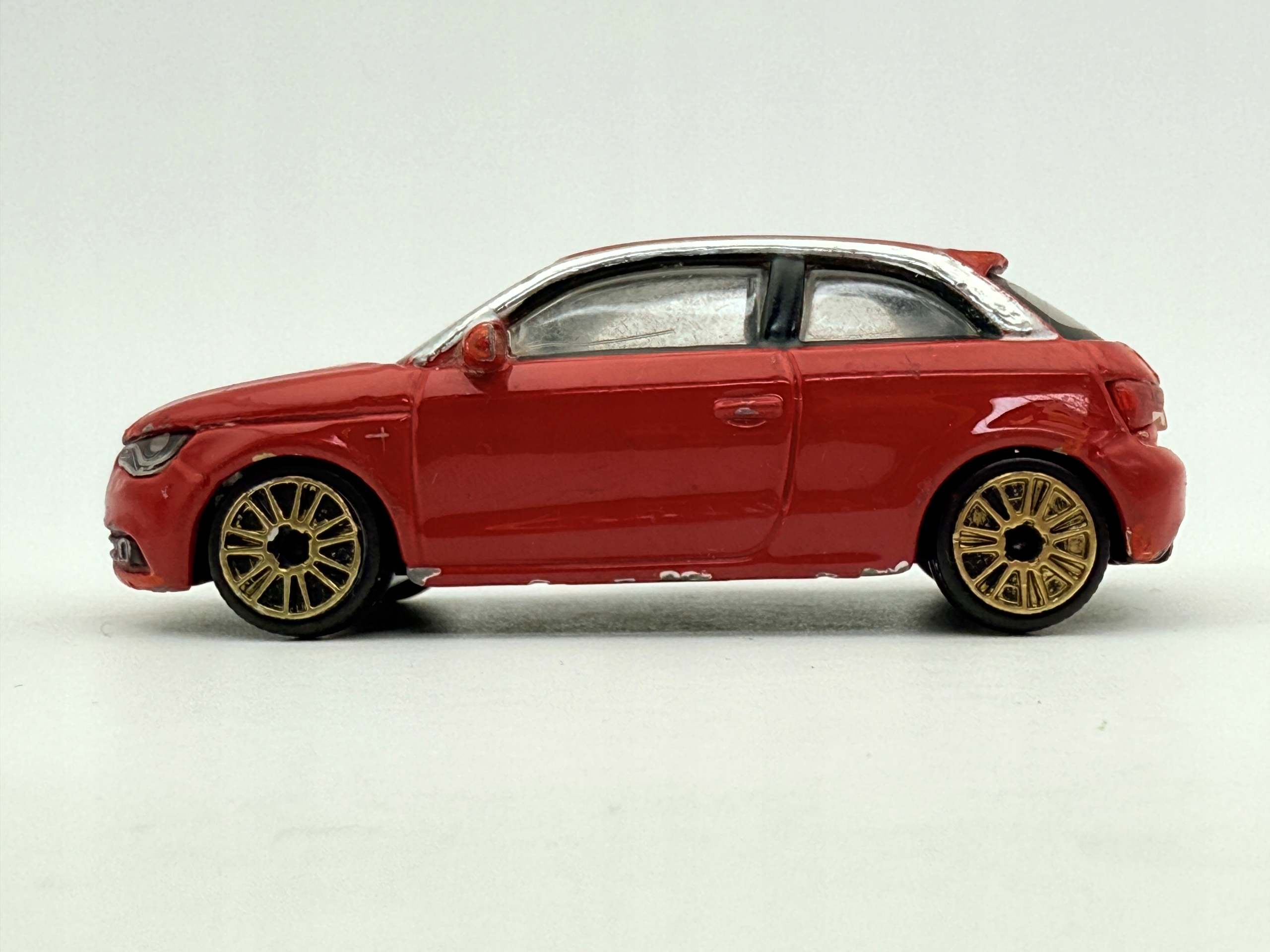 Модель основана на реальном Audi A1 и имеет динамичный и современный дизайн. Цвет классический красный с элегантными серебристыми элементами, подчеркивающими спортивный характер автомобиля. Не принадлежит к конкретной тематической серии.