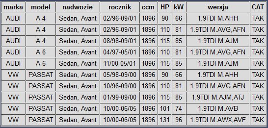 1/95-9/00 . 7/98-9/00Volkswagen Passat 1.9 ATJ atj 7/98-9/00