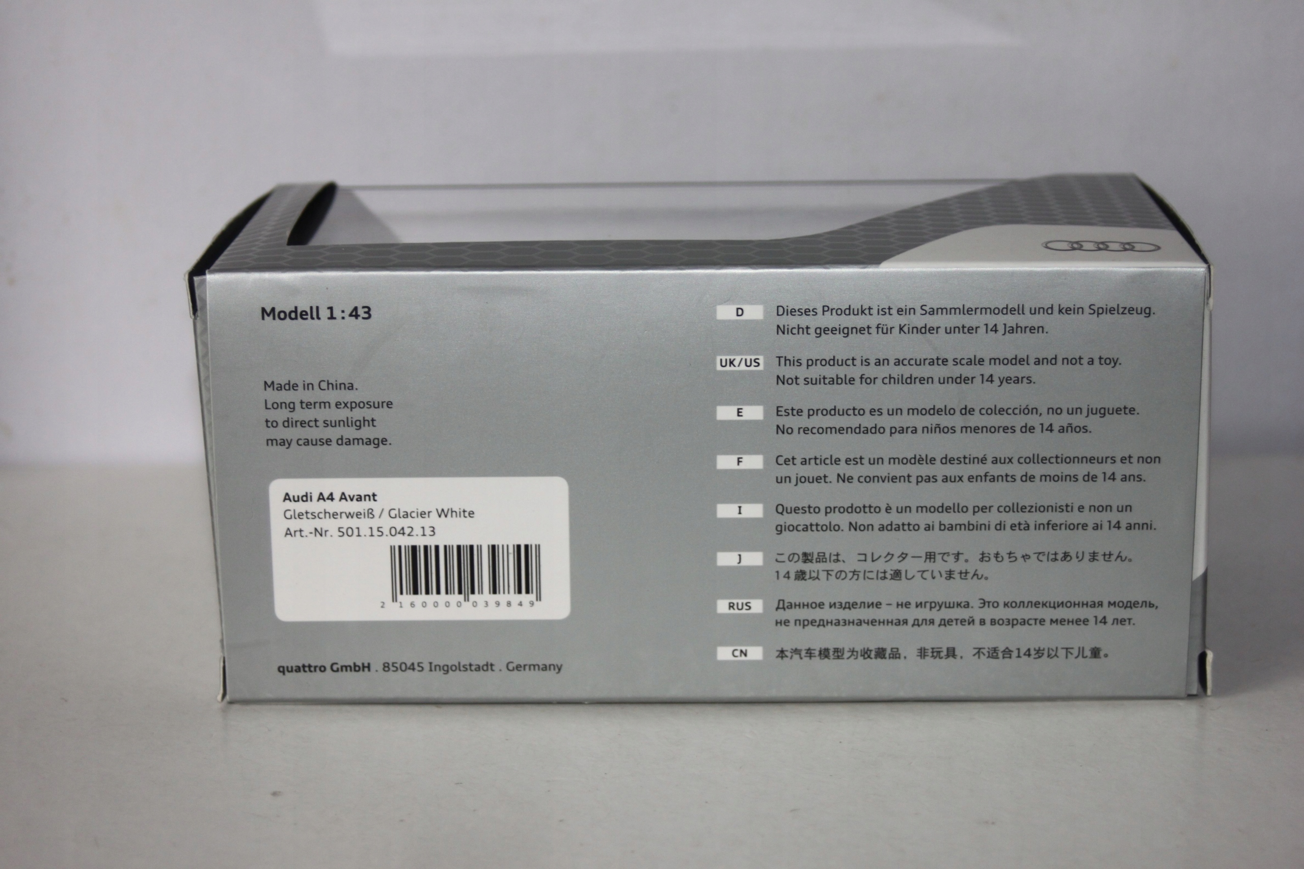 Оплачивая «Audi A4 Avant Kombi B9 Salonówka 1/43», вы можете быть уверены, что данный товар из каталога «масштаб 1: 43» будет доставлен из Польши и проверен на целостность. В цене товара, указанной на сайте, учтена доставка из Польши. Внимание!!! Товары для Евросоюза, согласно законодательству стран Евросоюза, могут отличаться упаковкой или наполнением.