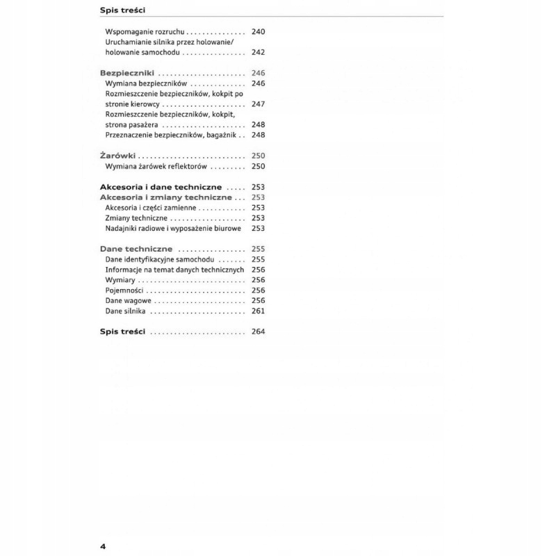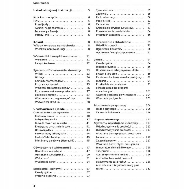 Руководство пользователя Audi содержит все версии оборудования и полезную информацию о том, как использовать автомобиль эффективно и безопасно, например, управляющие лампы, управляющие лампы, открытие и заклинание и видимость, сиденья, пространства для хранения, нагревание, вентиляция, управление кондиционированием, руководящие правила для обслуживания транспортных средств, а также оболочки и наполнители, носители, а также оборотные транспортные средства, а также комплексные кондиционирование, а также оборотные транспортные средства, а также комплексные транспортные средства, а также оболочки, а также оборотные транспортные средства, а также оболочки, а также оборотные транспортные средства, а также оборотные транспортные средства, а также оборотные транспортные средства, а также оборотные транспортные средства, а также оборотные транспортные средства и наборы Вещи, которые дают чувство безопасности и комфорта для путешествий. Закон навязывает продавцу обязательство прикрепить машину в польс. Руководство автомобиля новое и в польском.