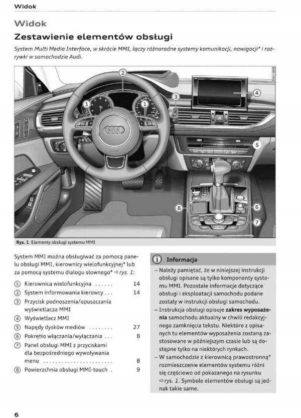 Просматривая «Audi A6 2014-2018+MMI Navigation Руководство пользователя пользователя», вы можете быть уверены, что данный товар из каталога «Инструкции по эксплуатации» будет доставлен из Польши и проверен на целостность. В цене товара, указанной на сайте, учтена доставка из Польши. Внимание!!! Товары для Евросоюза, согласно законодательству стран Евросоюза, могут отличаться упаковкой или наполнением.